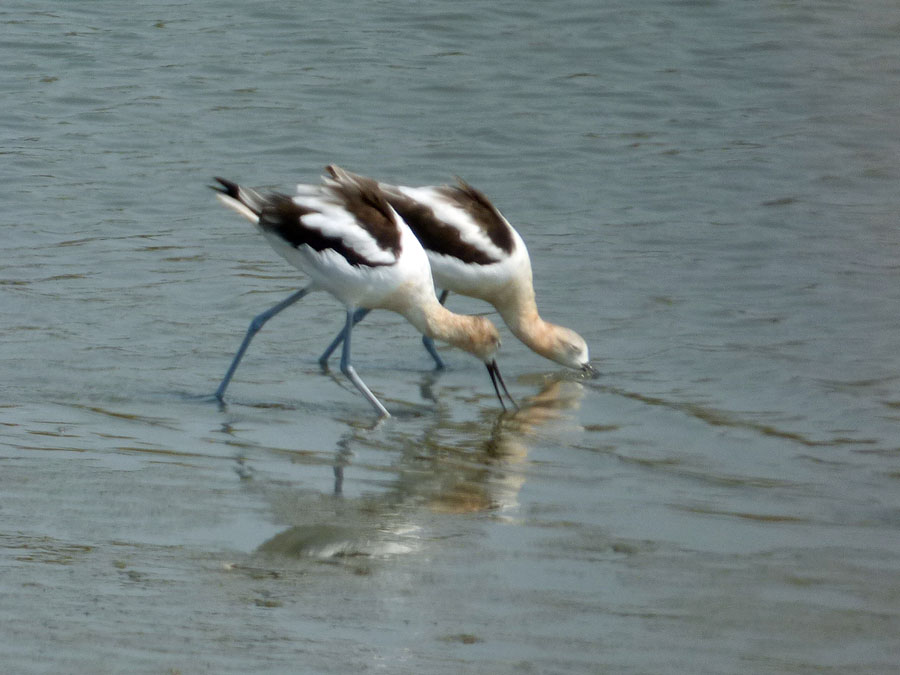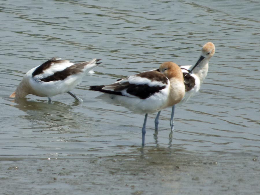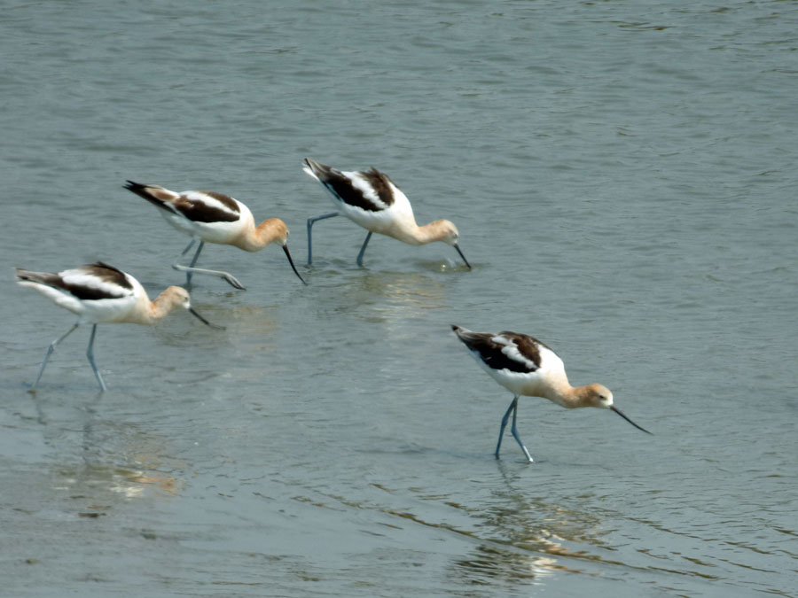 There were a large number of birds on the third side of our rectangular walk. Fortunately, a plaque next to the trail identified them for me: American Avocet. There were several varieties of birds, but I focused on these.