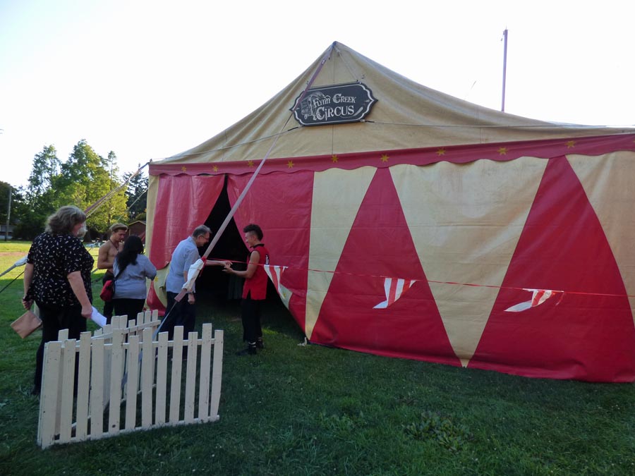 We went to the circus in the evening. Flynn Creek Circus, a Mendocino-based circus/theatre, is performing in Fortuna, California this week. We attended the “adult” or bawdy performance and it was hilarious. There was some silly little plot, but the circus tricks had me gasping and cheering all night.