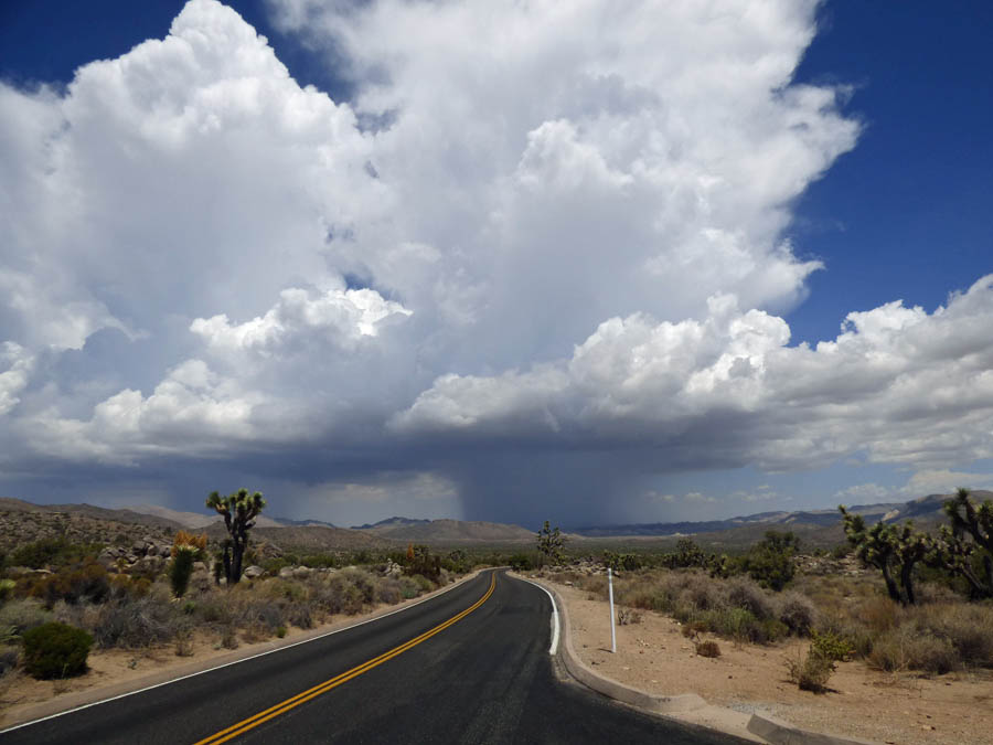 Well, guess what. It really does rain hard in the desert. I rained really hard. Water was washing across the road in low places. Some people were pulling over; it was raining so hard. It passed.