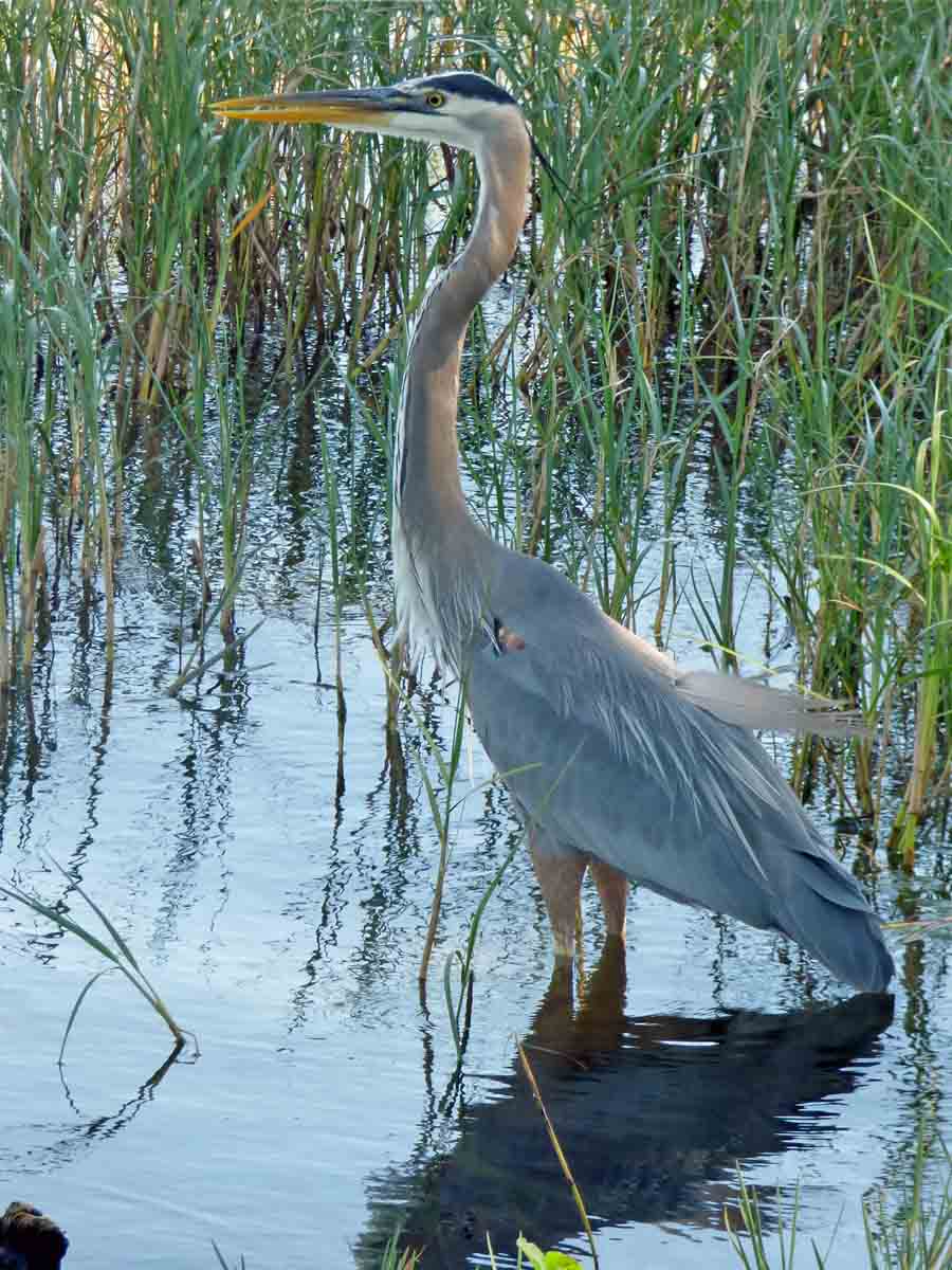 Then it is time to walk. I had not noticed the hole in this Great Blue Heron’s feathers until I got the pictures on the computer.