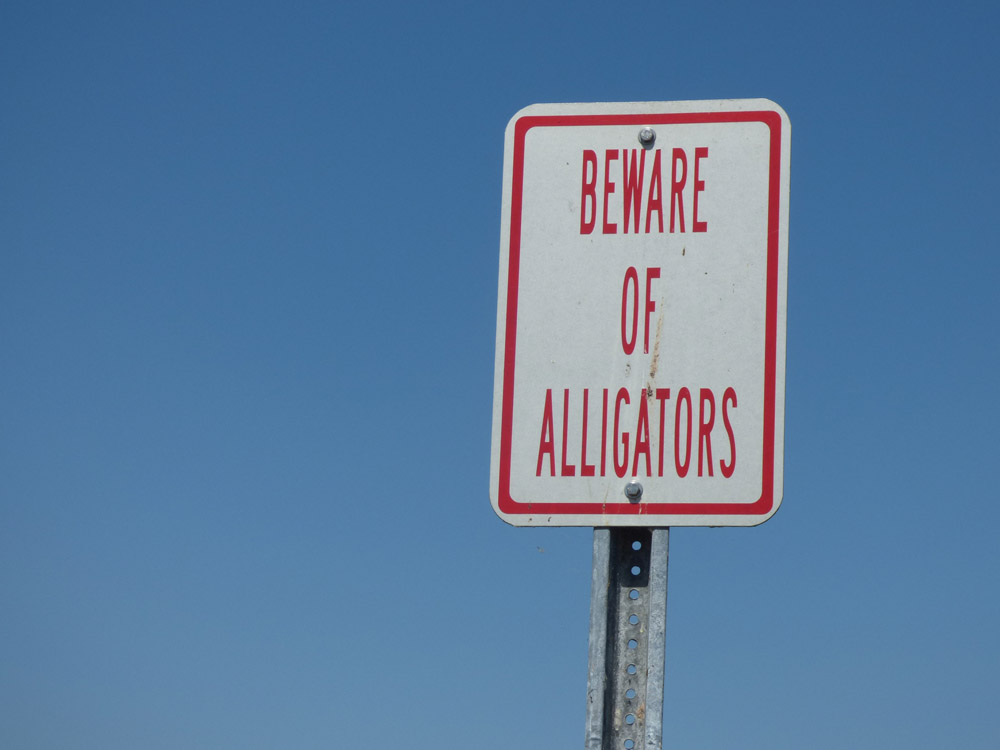 The alligator decided to swim on up the canal. It was not moving its limbs at all. Only the tail moved with a slow and gentle sideways wave.