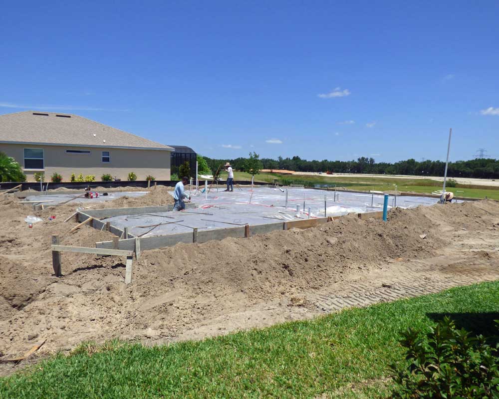 This may have been the same crew that built the form for the cement slab. They had already laid out the plastic vapor barrier when I came out the front door in the morning.