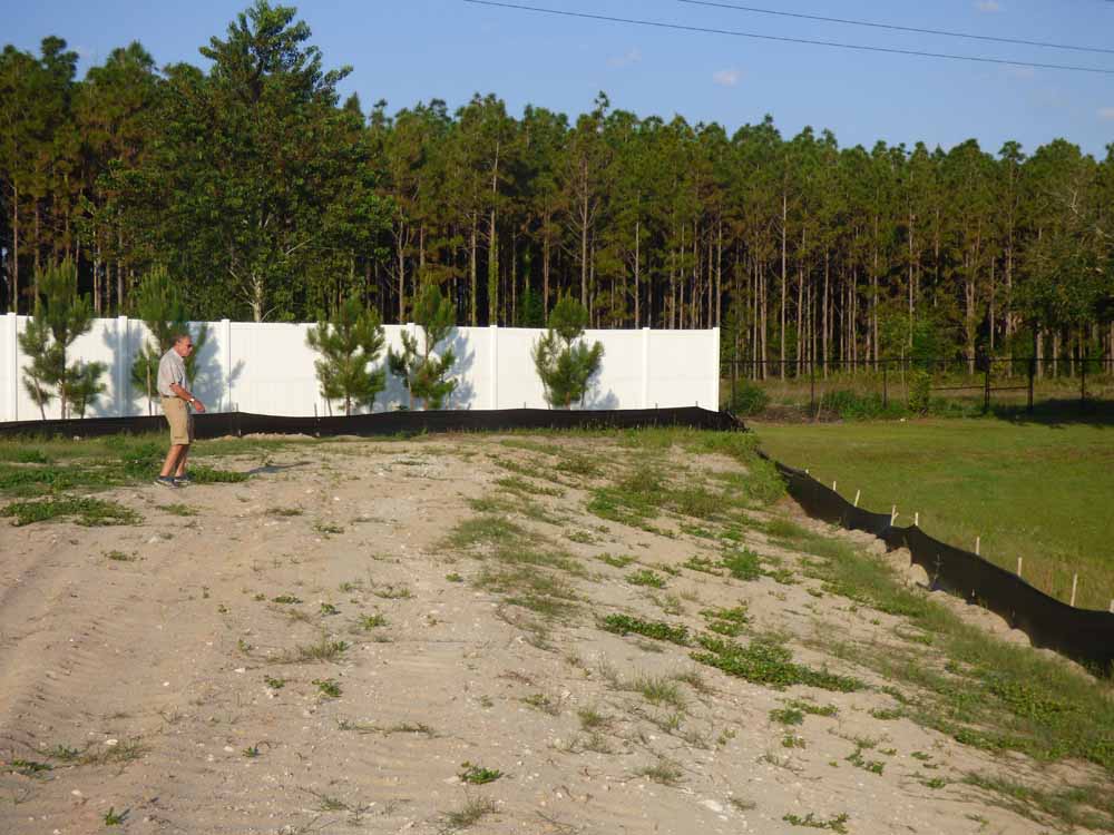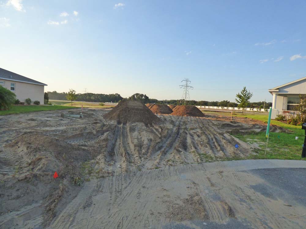 We repeated our walk through the new section and across the golf course this morning. The first thing we saw when we went out the front door was a dump truck dumping dirt in the lot next door. (Can it be called next door when it does not have a door?) They ended up dumping nine dump-truck loads.