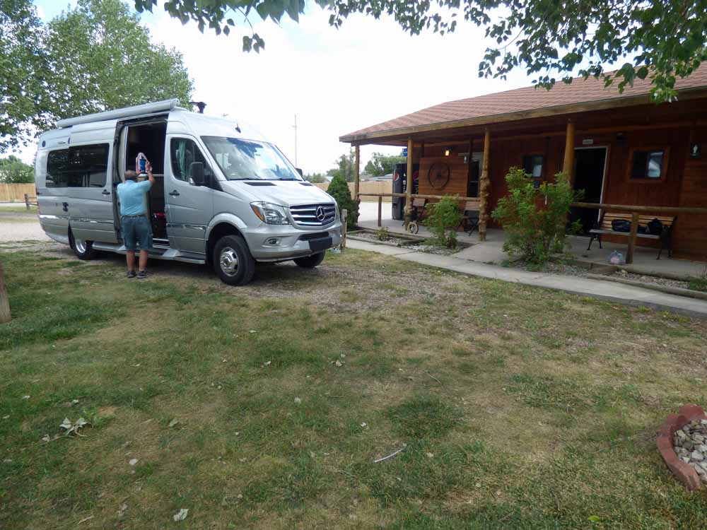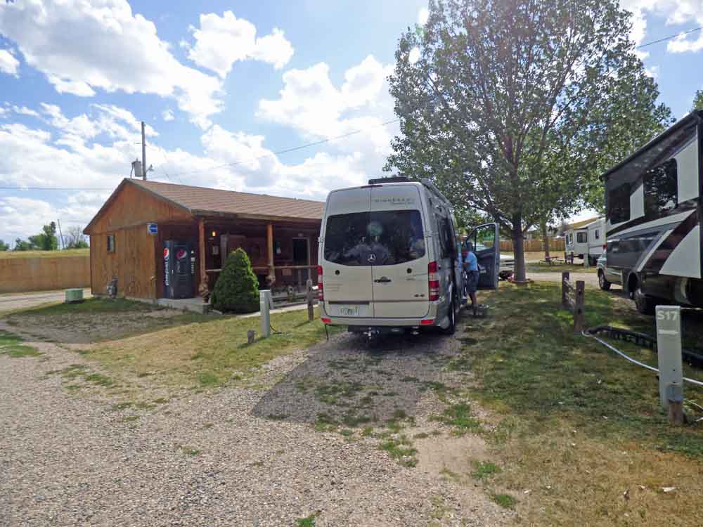 We got to our campground in Cheyenne, Wyoming at 1546. Cheyenne looked industrial (oil industry) from the highway. We did not see a nice part of town. The RV park is on the outskirts of town in a run-down area with junk lying around. The campground itself is very nice and is full of large trailers and motorhomes. The man at the front desk asked if we wanted to be close to the shower building and Andy said yes.