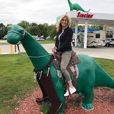 Here is another picture (I got from the web) of Sinclair the dinosaur we saw as we were heading back to the interstate. The dino in front of this Sinclair station is dressed as a horse. This lady took advantage of the prop for a photo.