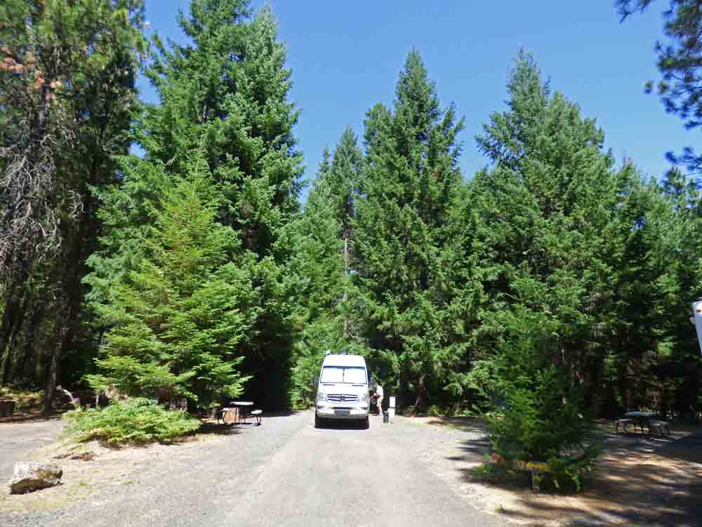 The scenery from Bend to Prospect, Oregon is all trees. Both sides of the highway. Uphill and down. If it was not so beautiful, it would be boring. Crater Lake RV Park is actually thirty-five miles from Crater Lake National Park. We passed the north entrance to the park and the south entrance. We traveled 132 miles today.