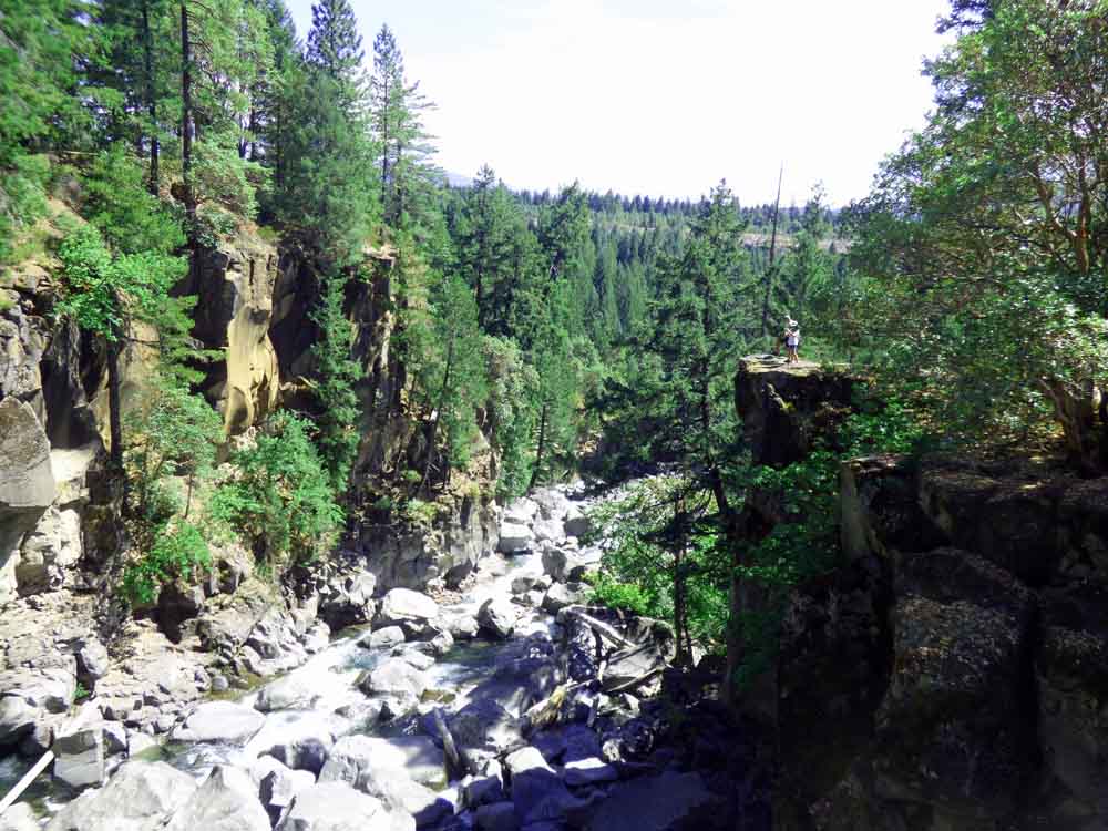 We drove a mile or so down the highway to a bridge over the Rogue River. The gorge was stunning and deeper than it appears in my photos. The waterfall was higher and steeper than it appears here also. Note the platform on the right side of the picture. That is a deck behind someone’s house.