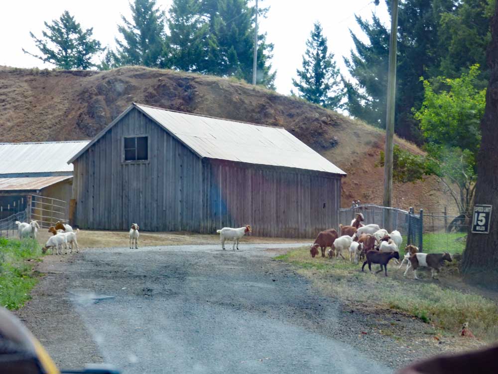 We had gone a long way when Christopher said we might see goats around the next bend. Sure enough, a large herd of, maybe, fifty or more goats was ambling across the road. We stopped to watch them pass. They were small goats and even smaller kids. This was before the road got narrow.