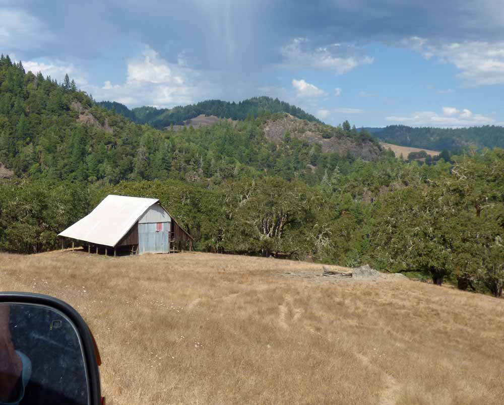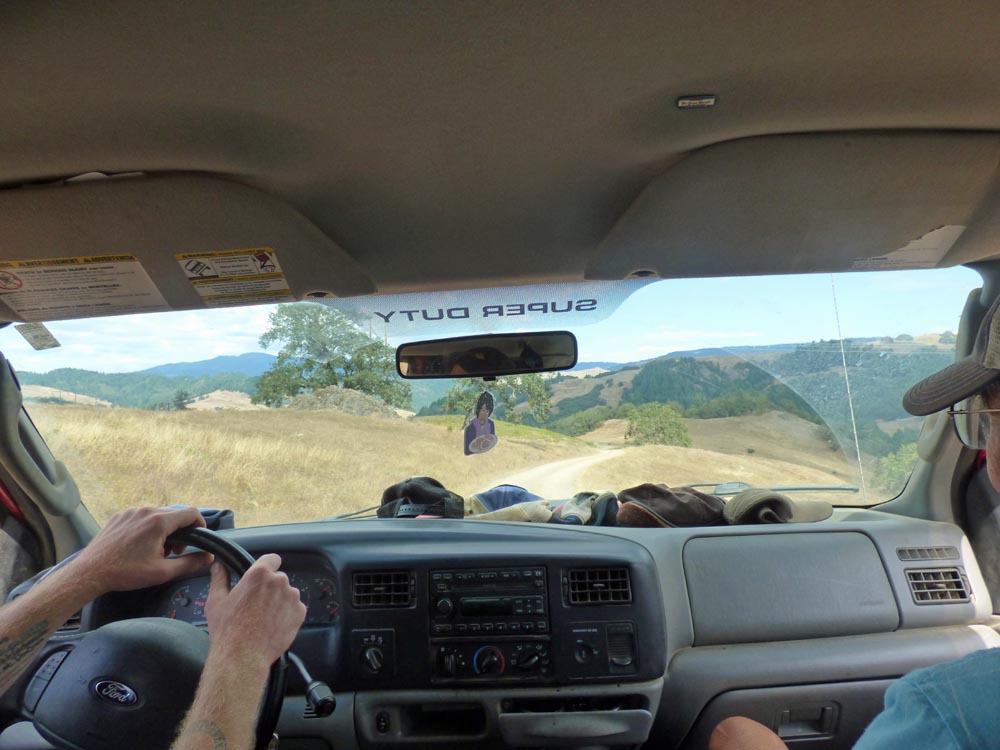 The scenery was gorgeous, mountains, trees, sky, cattle, and, rarely, a house. At first, the road was paved and lined. Then it became paved with no lines. Pretty soon, the road was narrow with no shoulder. The pavement became gravel. The gravel road turned into some gravel on dirt. I was terrified that we were going to meet an oncoming vehicle and wondered how long we would roll before coming to a stop. From my vantage point in the back seat, the road did not look wide enough for Christopher’s pickup truck, much less wide enough for two vehicles to pass each other. We did encounter a couple vehicles and passed with no trouble.
