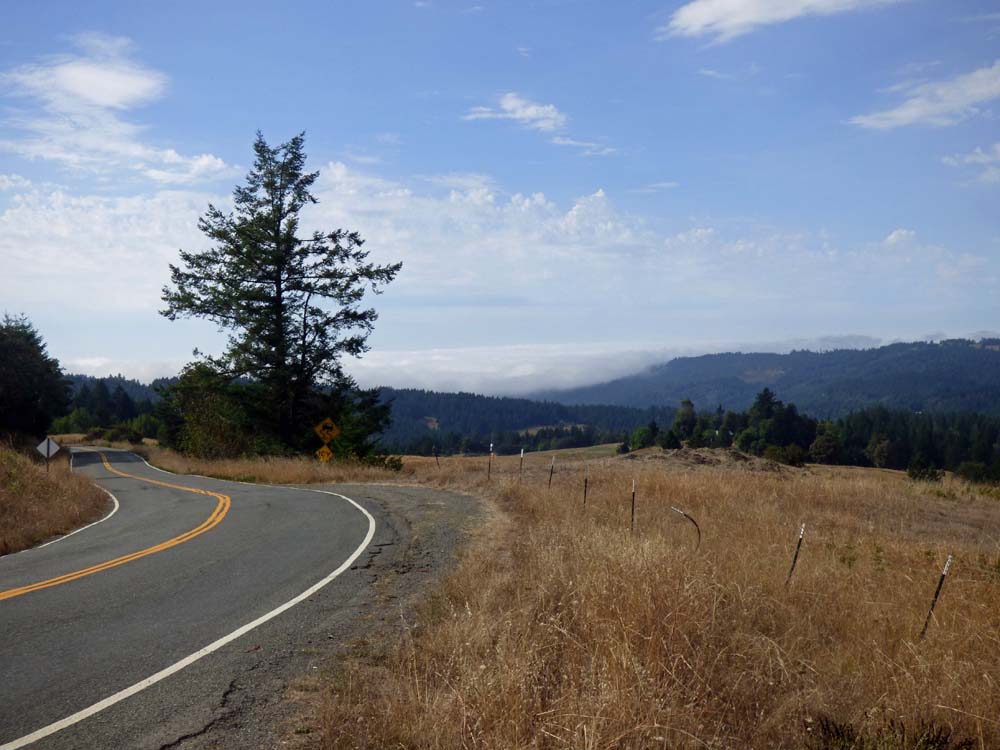 When we crossed back over to the ocean side of the mountains, we could see a thick layer of fog rolling it. I got out of the truck to take a couple pictures.
