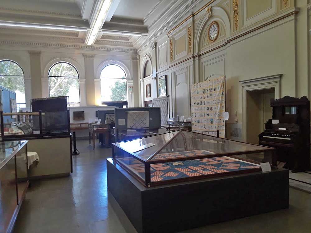 Cordelia recommended the Clarke Museum downtown in an old bank building. I love old, fancy bank buildings, so I would have enjoyed it if the place was empty. Andy and I spent a couple hours looking at the exhibits in this relatively small museum. One room was primarily quilts made in Eureka over the years. Two caught my interest.