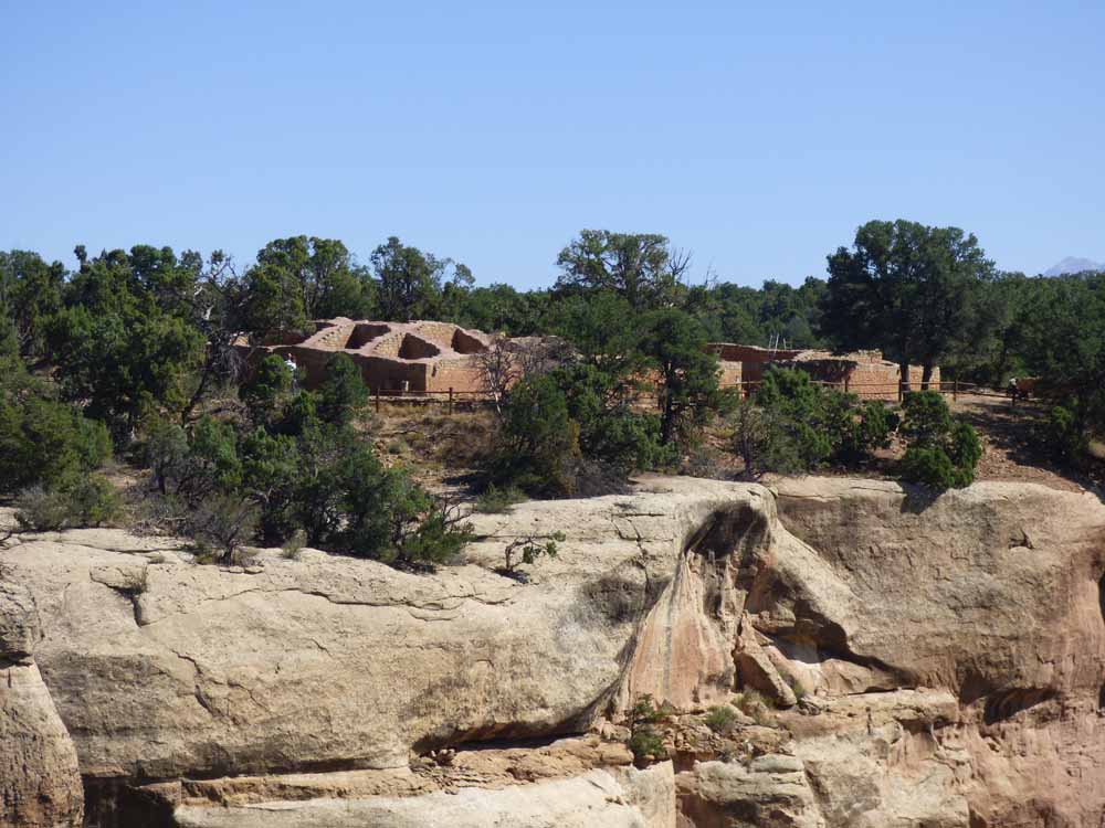 There were not many cars pulled over for the pit houses. I suppose people are just interested in the more famous cliff dwellings. I am gla we stopped. It had not occurred to me that ancient people also lived on top of the mesa, not just in the cliff alcoves. From the signs, we learned the time period and peoples that people used different house construction and could see how they advanced over time.