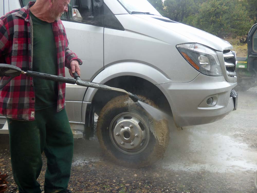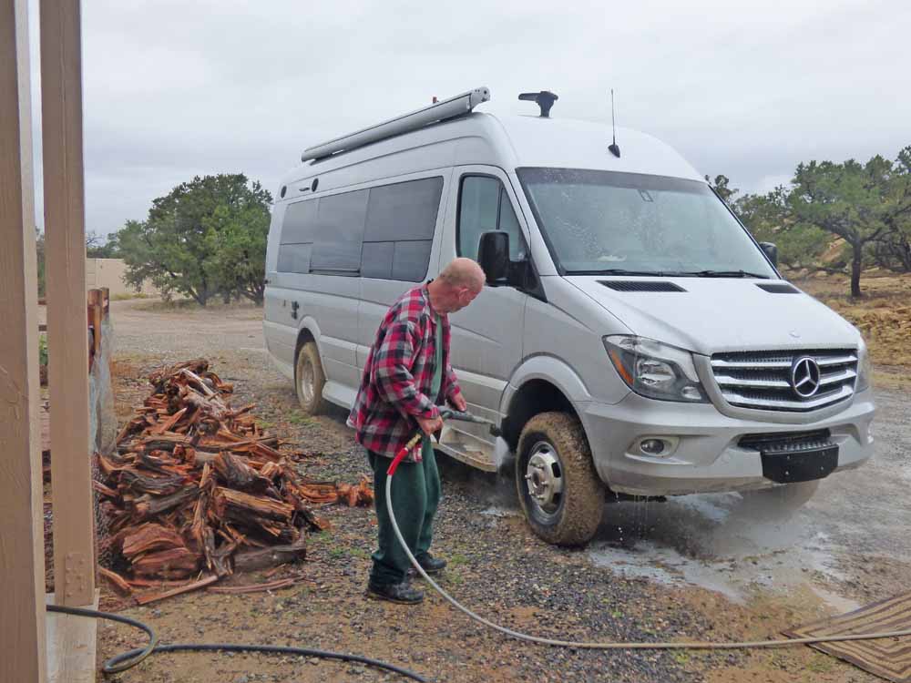 We arrived and spent the evening talking our throats raw. This morning, Roy decided that he needed to get the “atomic mud” off Scamp before it got too dry and turned to concrete. Roy doesn’t do anything in a small way.