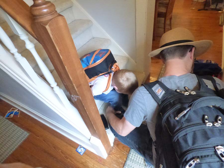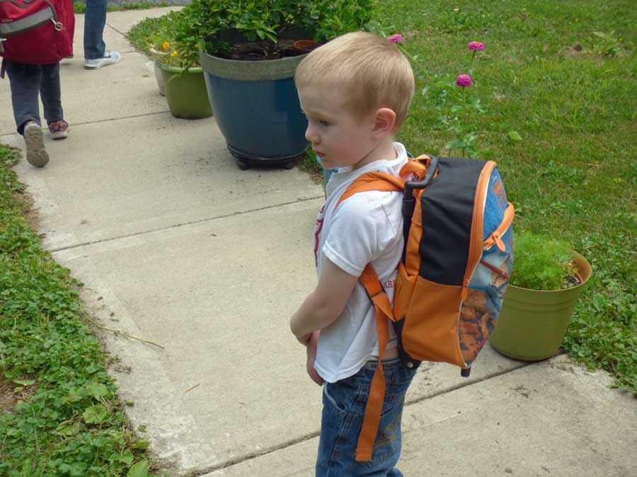 Jennifer came outside wearing Cam’s new backpack. He got it this week and has been sleeping with it. He will start four-year-old kindergarten in a few weeks. He gave Jennifer permission to use his precious possession for the trip.