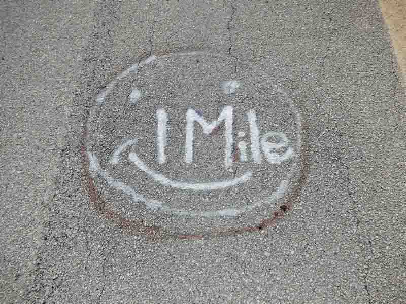 Someone has marked the distance on the bridge in quarter mile increments. The one-mile mark is fun.