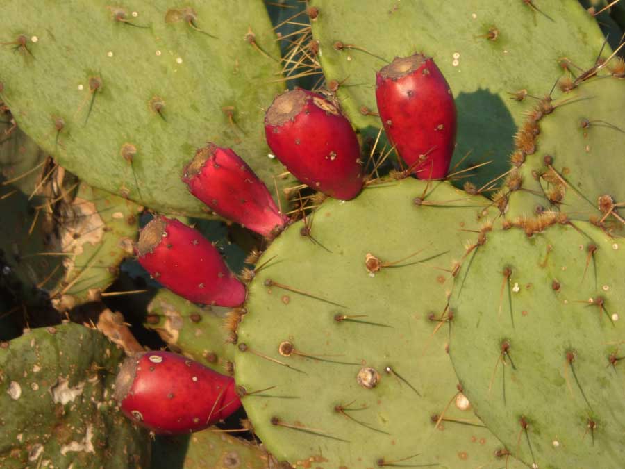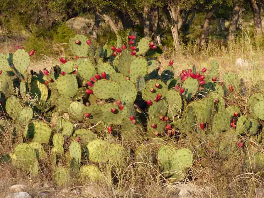 The hillside is covered with Prickly Pear Cactus. These are the redest cactus pears I have ever seen.