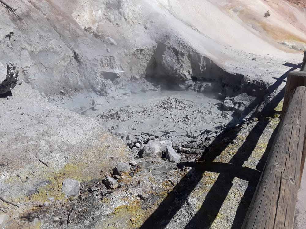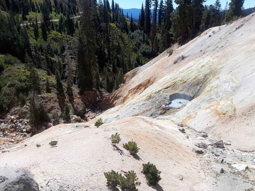 There are more in the park, but we only saw two at this stop. This mud pot was at a furious boil and little blobs of mud were going airborne. My picture did not capture the copious amount of steam rising from the pot. These are the same features seen in Yellowstone. Like Yellowstone, Lassen is an active volcano.