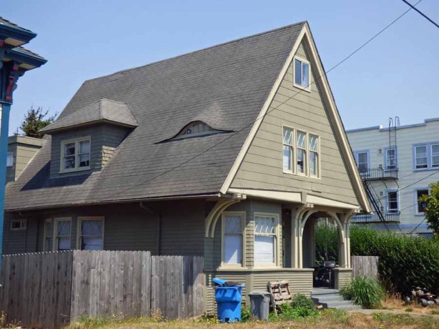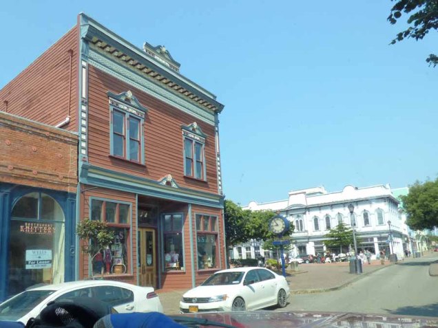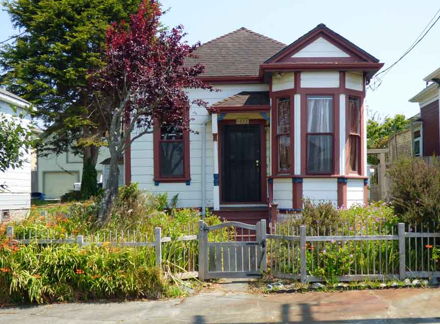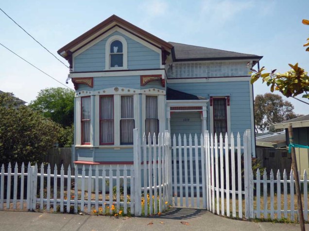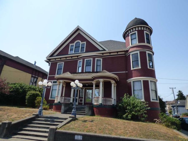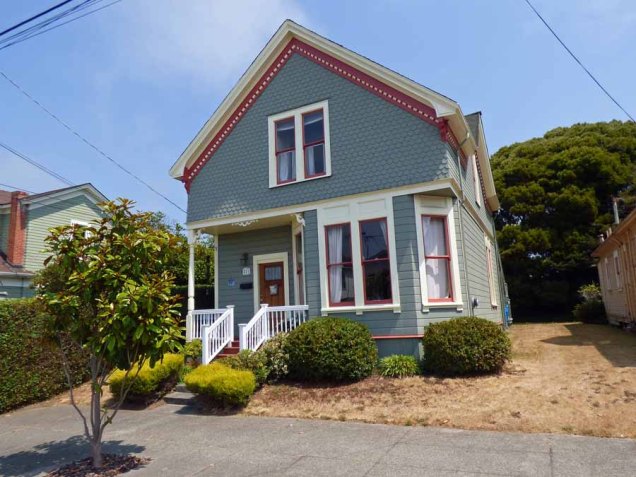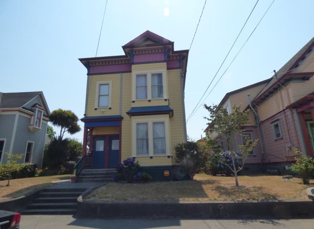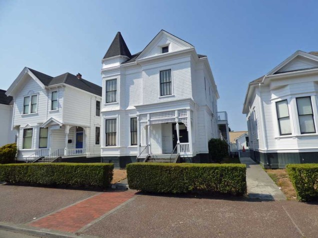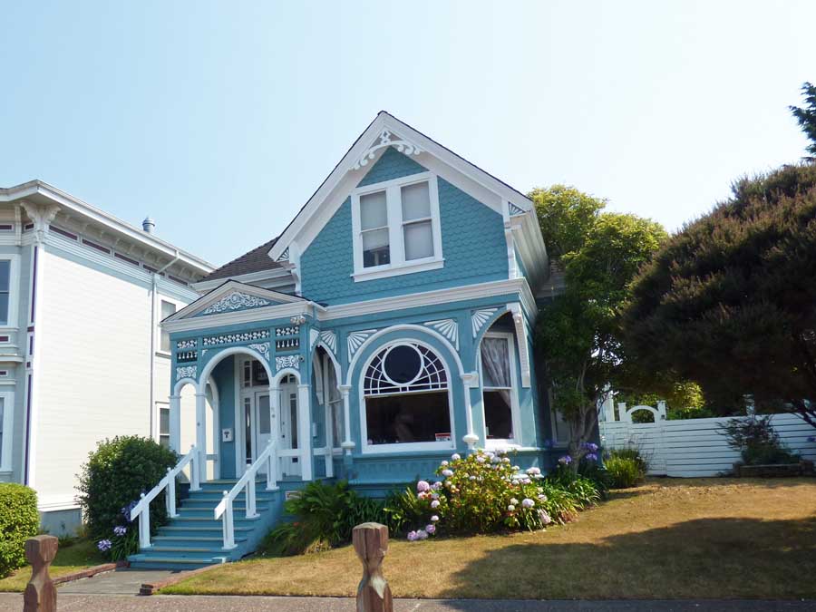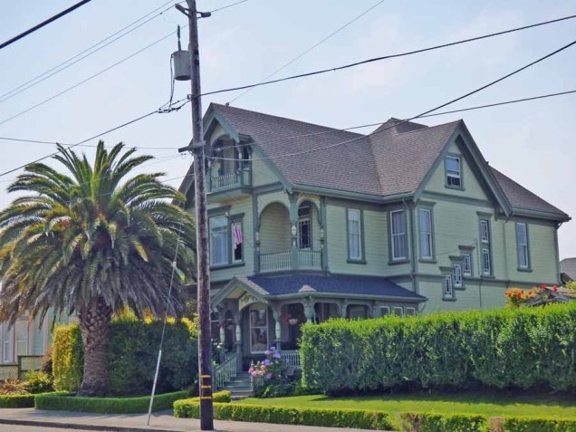 I’ve been wanting to do this for years. Today was the day. Christopher drove me around town, up and down the residential streets and through the Old Town downtown. I sat in the front passenger seat with the window down while Andy was squeezed into the pickup truck back seat. Most of the time, Christopher stopped (or, at least, paused) for me to take pictures of some of the Eureka architecture. There are so many interesting homes and other building in this town. It is an old town, founded here due to the natural port of Humboldt Bay, fishing, redwood logging, and the gold rush. There are 1,500 buildings which qualify for the National Register of Historic Places. While other cities have modernized, Eureka has maintained many of those old buildings in excellent condition. Wikipedia has a thorough write-up on this small city.