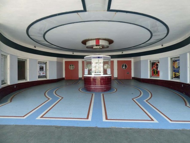 Here is the ticket booth. I can’t think of a word for that open space in front of old movie theaters. This one is grand.