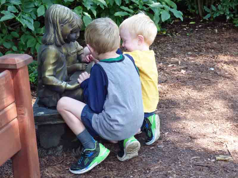 Owen and Cam were enamored with this small sculpture of two children reading a book. We passed it several times and they stopped to admire it each time.