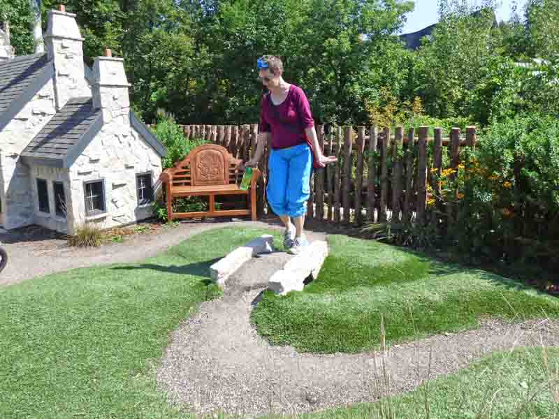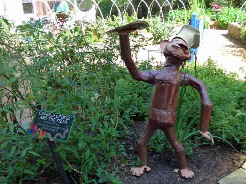 What a delightful park! I didn’t take any pictures of them, but there were also a number of real books for the children to take off shelves and read. There were many more books represented than I show here.