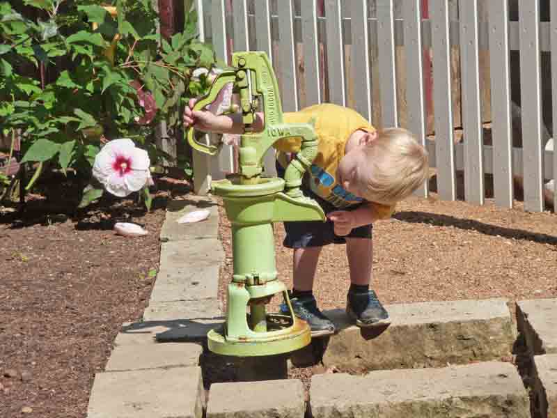 Then he found the water pump outside the barn and tried to figure out how to get some water. The pump was apparently not functional. A sign said don’t drink the water.