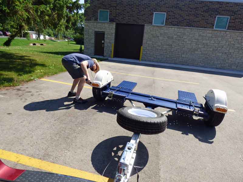 Son-in-love George gave Andy a birthday present that we really needed. I can’t remember what it is called, but it is a little post with a wheel on the bottom that attaches to the tongue of the tow dolly. Now we don’t have to pick it up! We can simply roll it around. I am so happy and it wasn’t even my birthday. George wanted to hook the dolly up and pull it around to make sure the lug nuts on the wheels stayed tight. So we hooked it up to Jennifer’s van and headed to Bookworm Gardens with the tow dolly rattling along behind us.